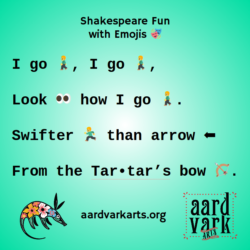 •Handy web tool if you looking for that perfect emoji: Emojipedia.org helped me formulate this for my 6 and 7 year old Shakespeare Fun students. Note to self: never use Eggplant emoji unless you really mean it.